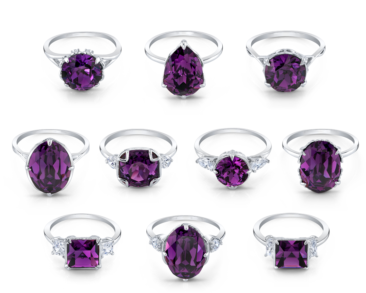 Inside each candle, you’ll discover 1 of 10 beautifully designed rings. Each ring is set with an amethyst-colored Swarovski® crystal to represent those born in February. Collect all 10 for yourself or save them for the perfect decadent February birthday gift. |